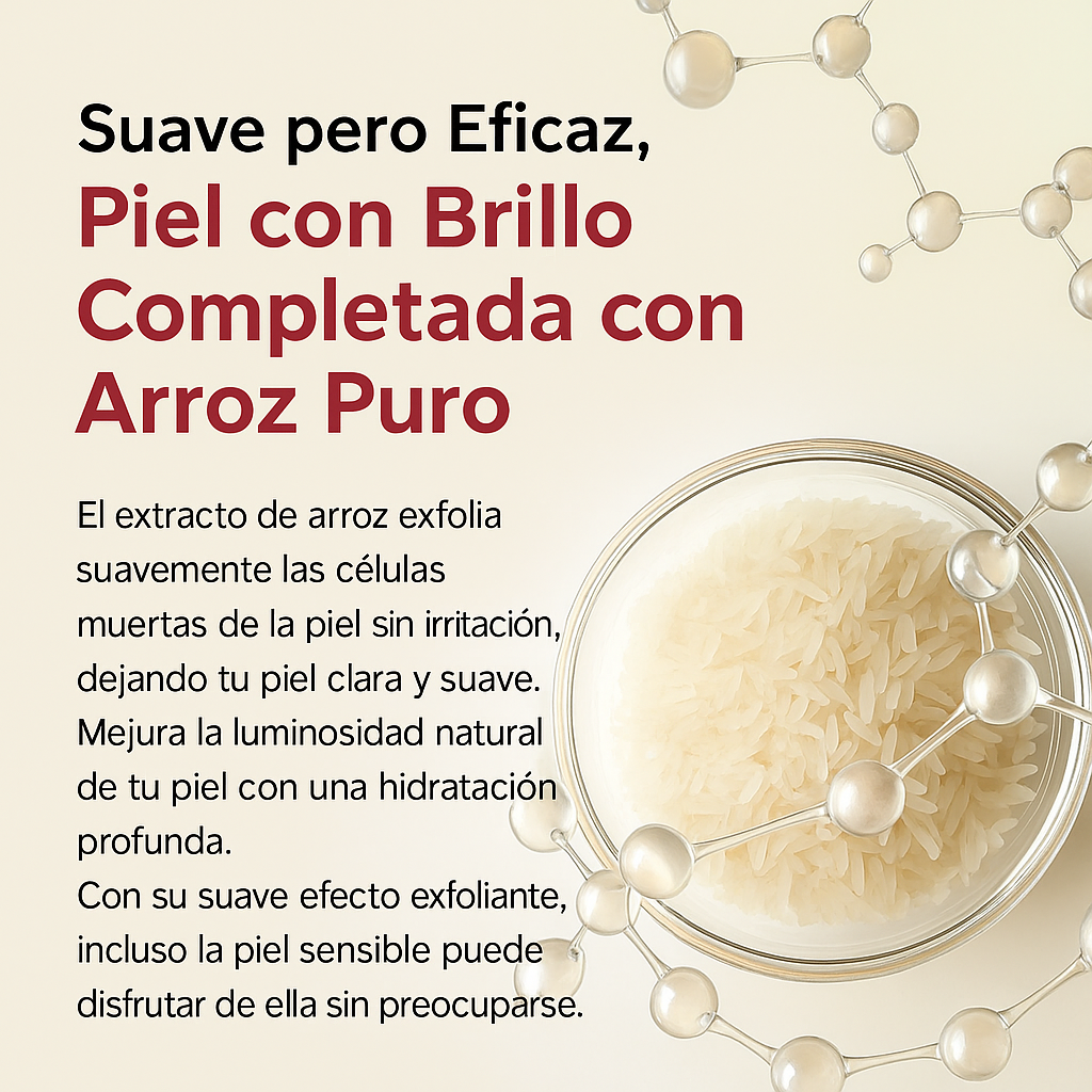 El Dúo de Ampollas de Arroz resuelve lo que ningún otro producto puede:- Reconstruye la estructura de los poros desde dentro con una concentración de arroz de 640,000 PPM- Disuelve los puntos negros desde su origen con ácidos liposolubles que penetran profundamente- Previene daños futuros y repara las imperfecciones existentes- Actúa CON la piel madura en lugar de contra ella. No necesitas otra crema superficial. Necesitas una solución que transforme tus poros desde adentro hacia afuera.